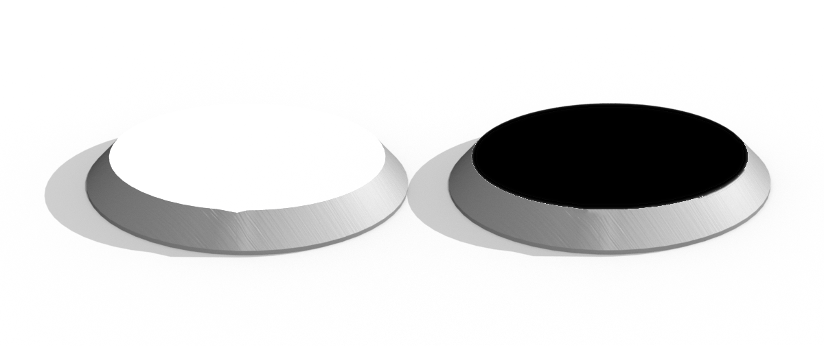 Vår enklaste lösning är en cirkel i aluminium som levereras färdig med häftämne. Kulören är antingen vit eller svart. Cirklarna monteras 12 st/meter.